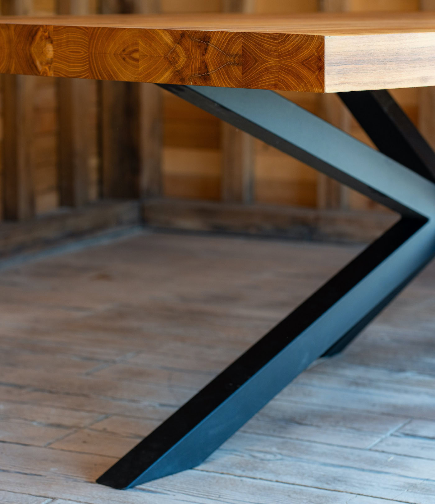Grosime de Impact (8 cm): Tehnica dublării marginii oferă un aspect de „bloc de lemn” masiv, conferind mesei o prezență arhitecturală rară, fără a adăuga o greutate imposibil de manevrat.