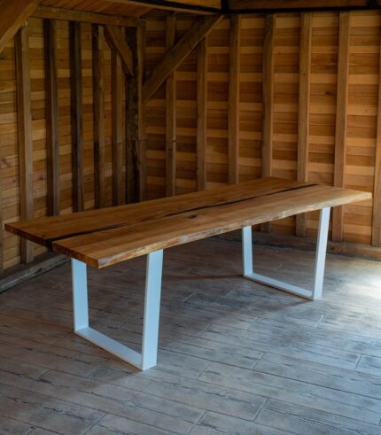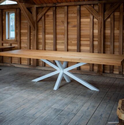 Proiectați masa perfectă, adaptată spațiului și stilului dumneavoastră. Masa noastră îmbină luxul lemnului masiv de esență tare cu designul modern, industrial, definit de picioarele metalice.
