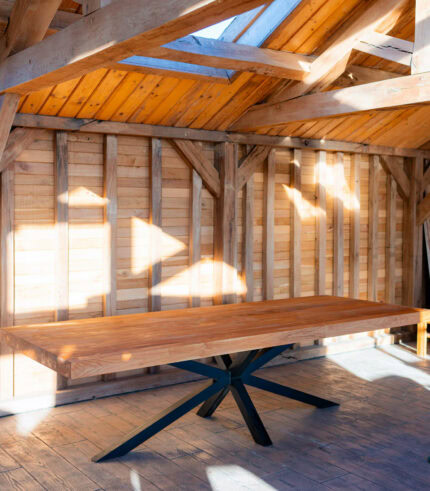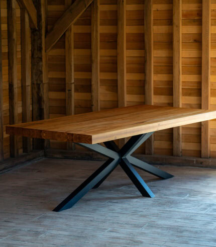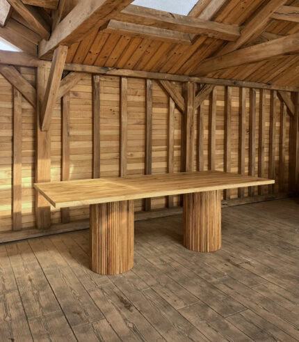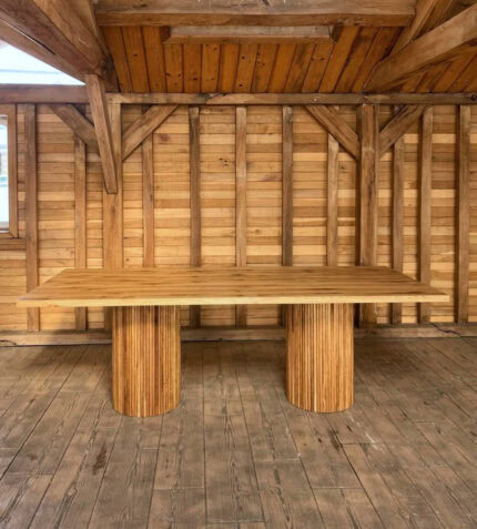 Redefinește spațiul de dining cu o piesă statement: masa din lemn masiv de frasin cu dimensiuni de 200×100 cm. Combinând forța brută a unui blat de 8 cm grosime (dublat) cu rafinamentul modern al picioarelor tip Spider, această masă este construită să găzduiască generații de amintiri, oferind un design contemporan și o rezistență de neegalat.