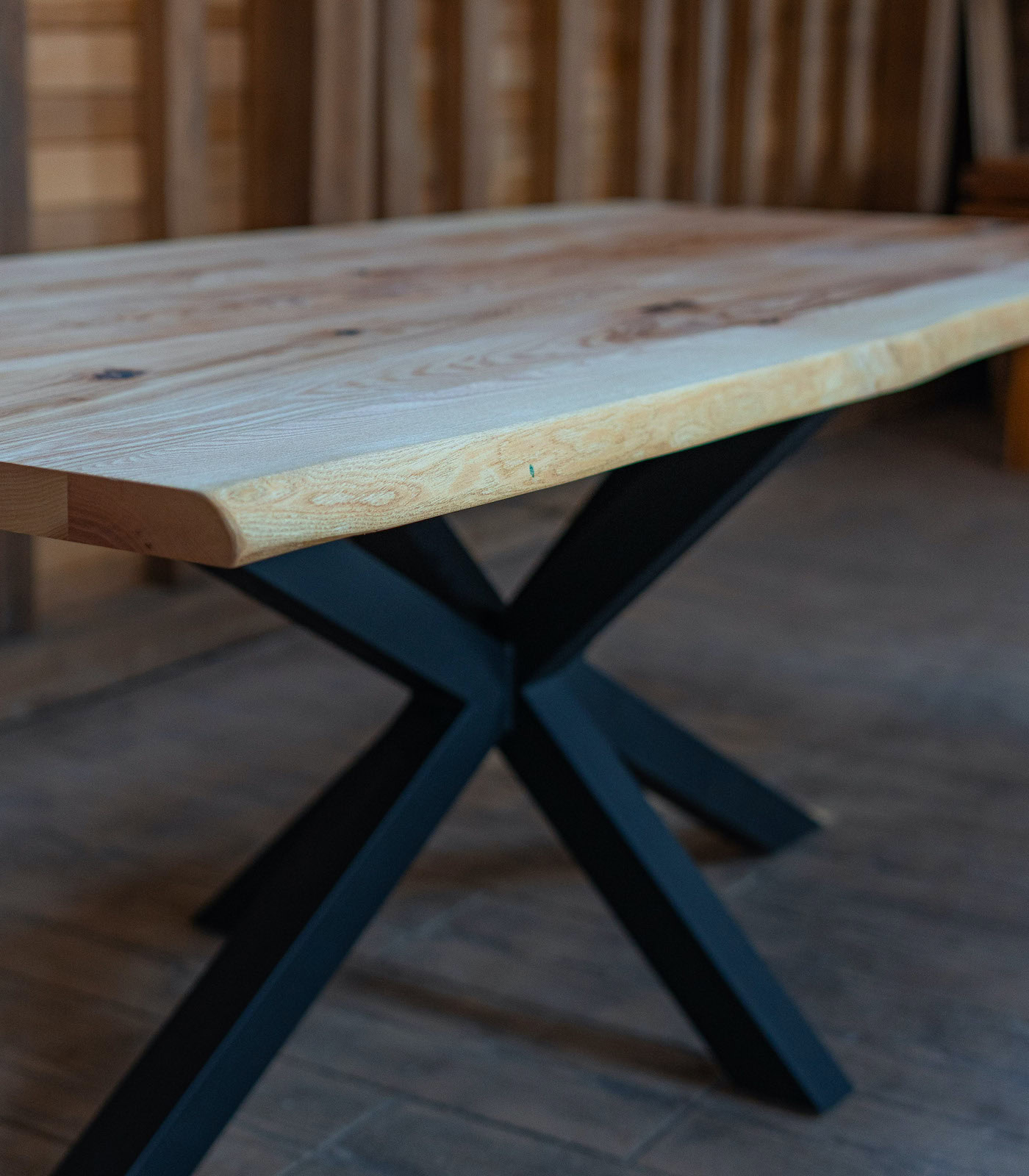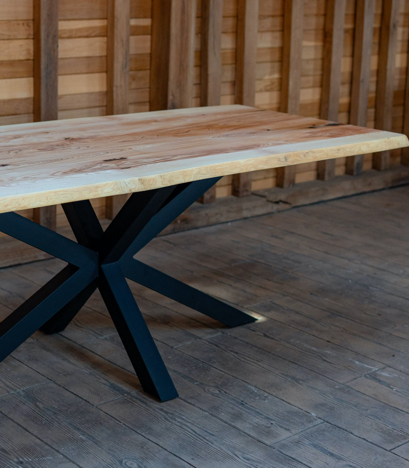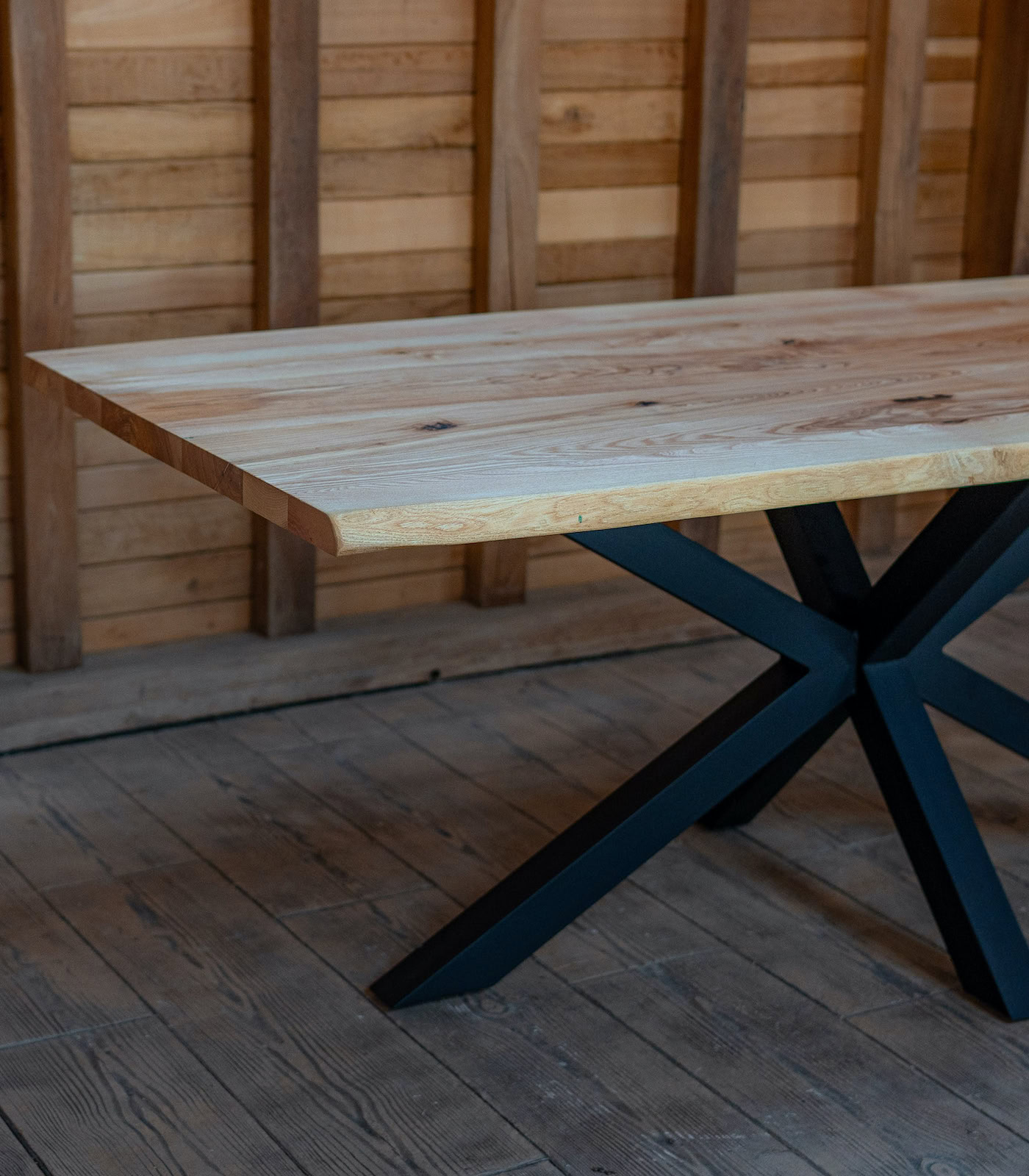 Adaugă un element central de impact în locuința ta cu masa din frasin masiv Nordic Horizon. Cu un blat de 4 cm grosime și margini naturale live edge, această piesă de 200×94 cm îmbină perfect căldura lemnului natural cu stabilitatea bazei metalice tip Spider.