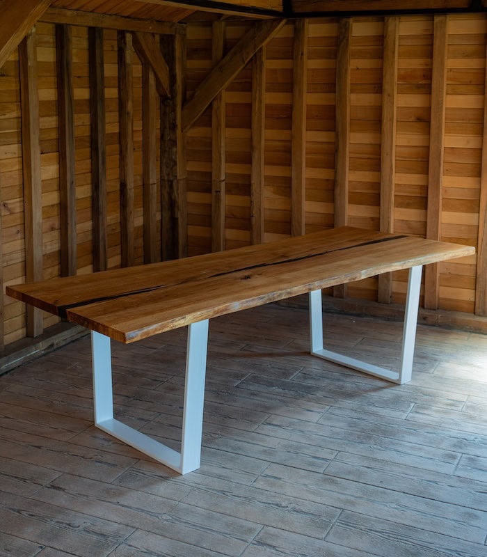Masă stejar cu picior alb cu inserție rășină -250x90cm