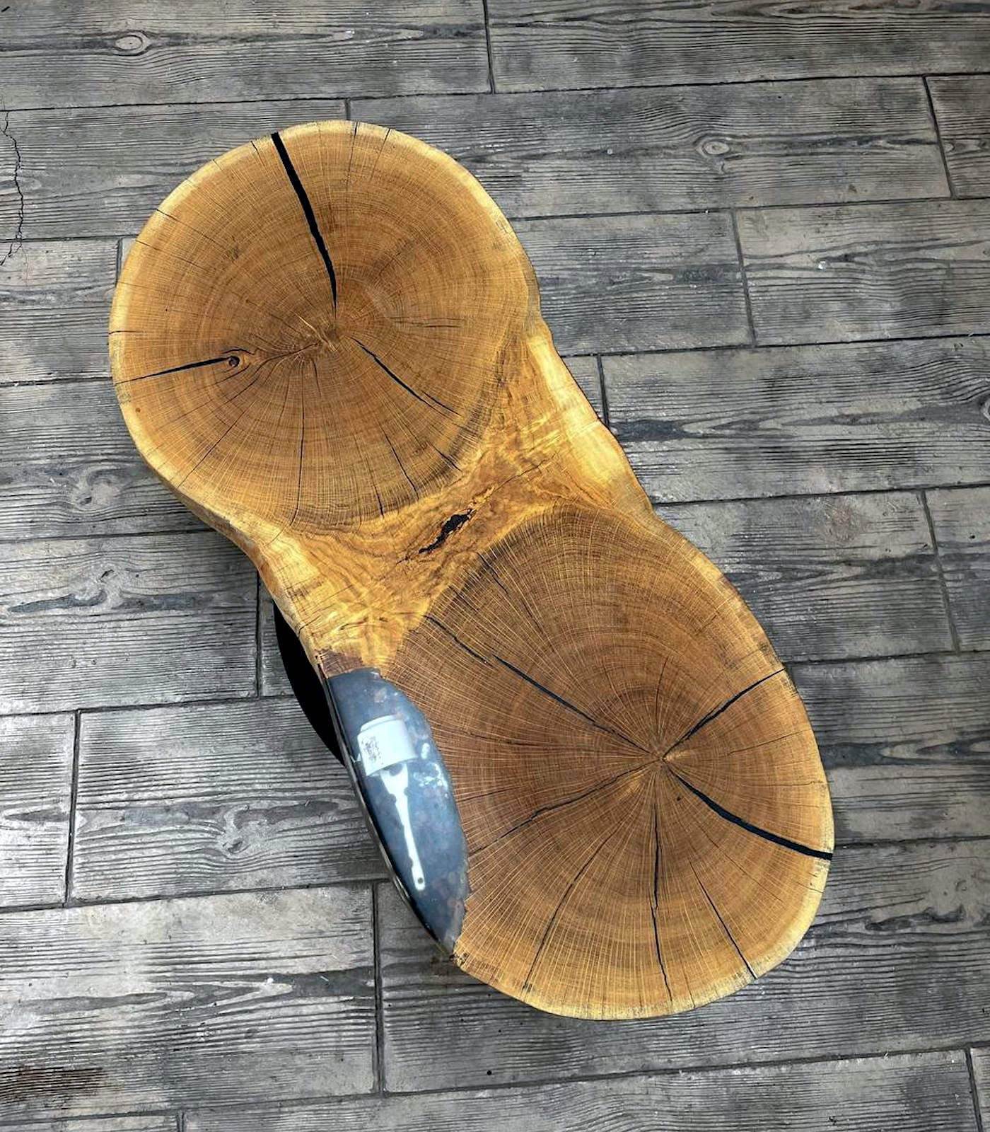 Măsuță de cafea din stejar masiv cu inserție de rășină și ceașcă încorporată, o piesă cu design inedit care combină frumusețea naturală a lemnului cu un detaliu surprinzător și ludic. Această măsuță atrage atenția prin originalitate și aduce personalitate și stil în livinguri sau zone de lounge moderne.