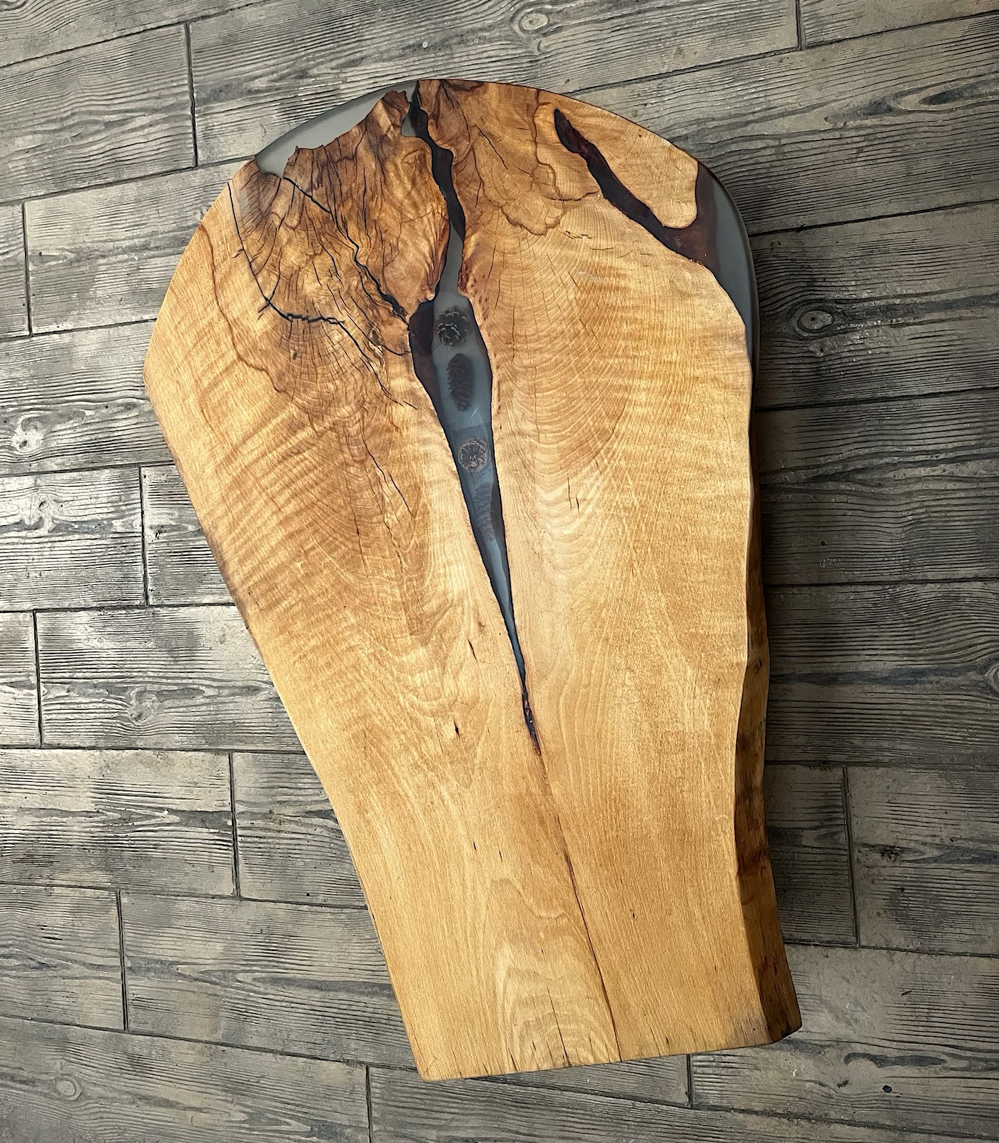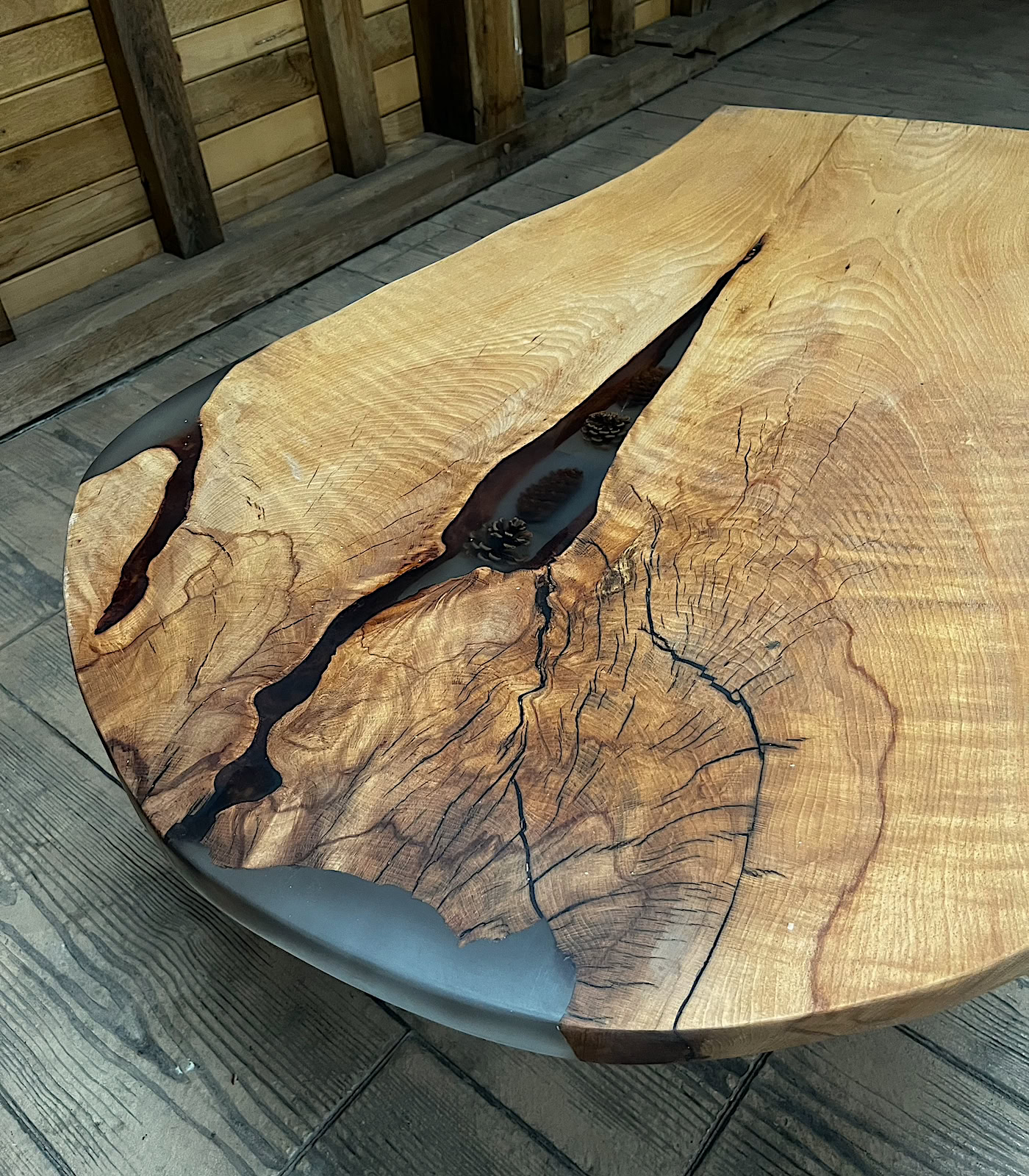 Măsuță cafea lemn de fag cu inserție răsină și conuri