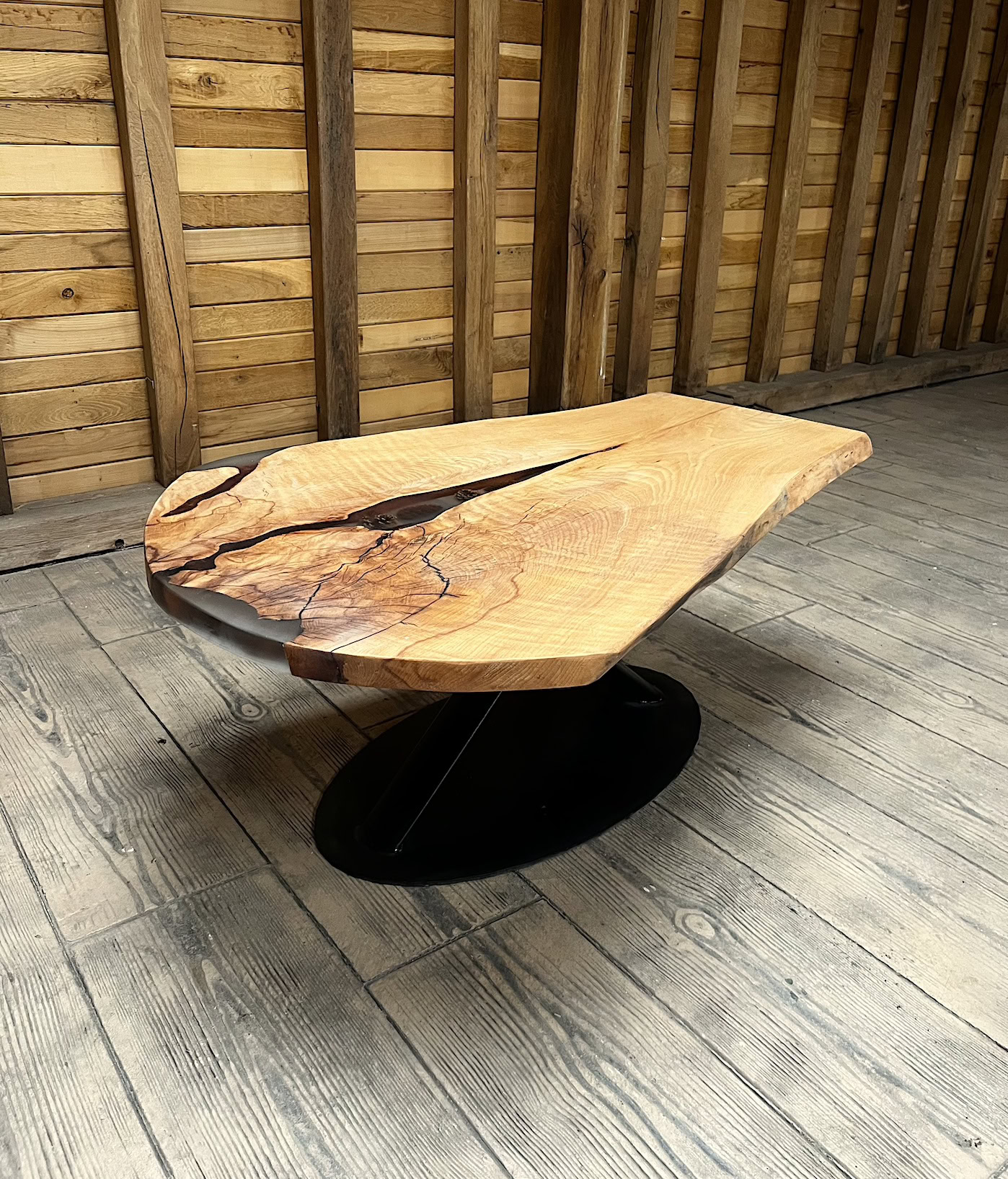 Masuță cafea stejar cu inserții rășină neagră