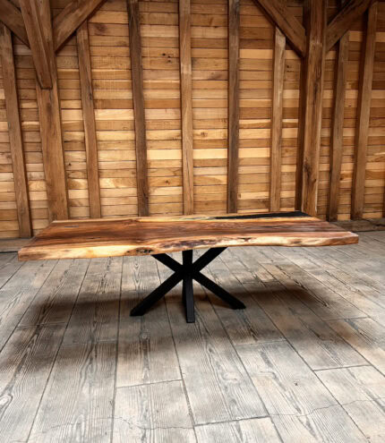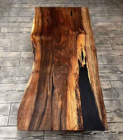 Măsuță cafea unicat nuc cu inserție de rășină neagră – 114×65 cm