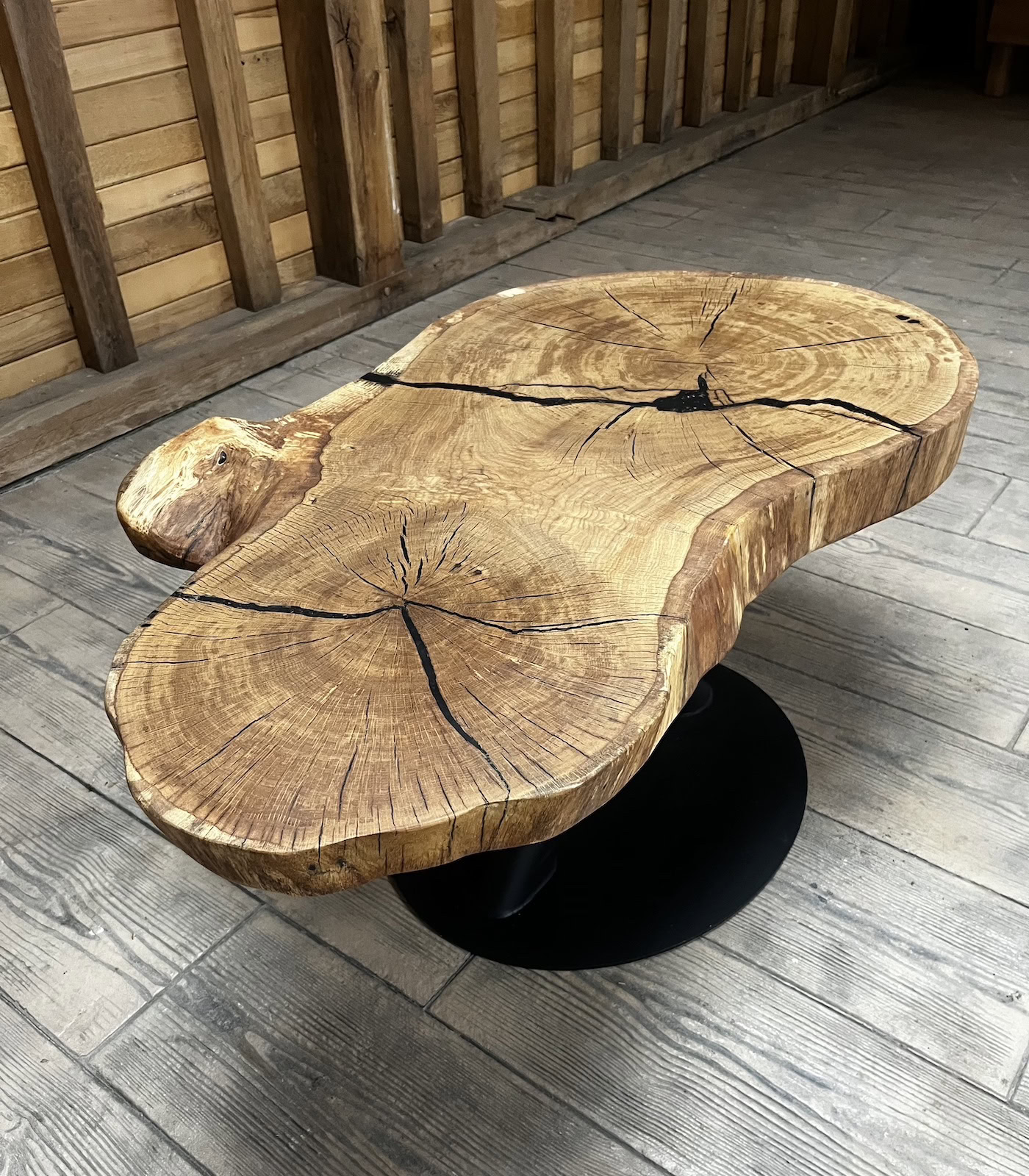O piesă de mobilier elegantă și expresivă, creată manual din lemn masiv de stejar, cu un design ce îmbină naturalețea lemnului cu modernitatea rășinii epoxidice. Blatul evidențiază fibra autentică a stejarului, iar inserția din rășină aduce un detaliu vizual distinctiv, perfect pentru interioare rafinate.