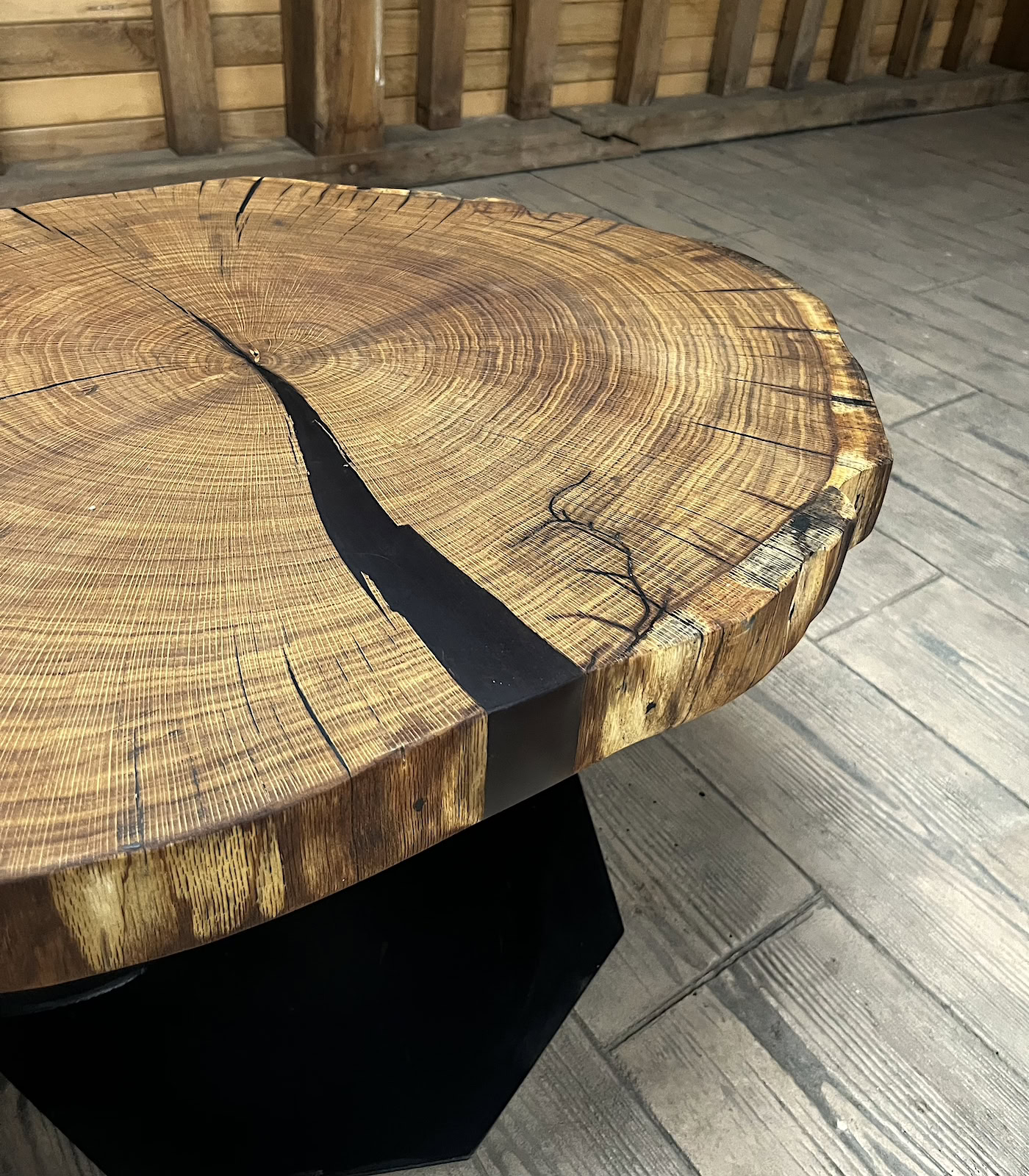 Masuță cafea stejar cu inserții rășină neagră