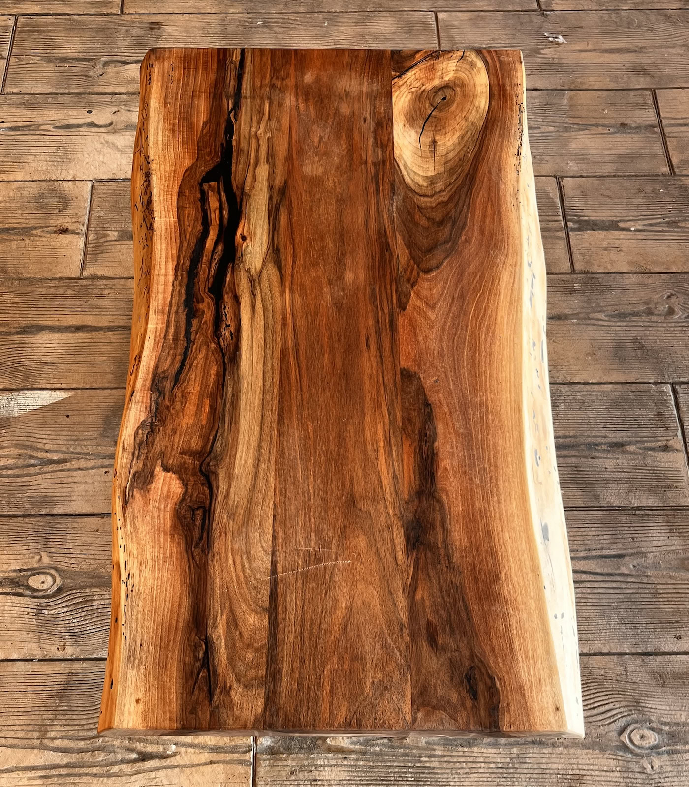 Ceea ce diferențiază această piesă este grosimea sa solidă de 5 cm, oferind o prezență impunătoare și o durabilitate de generații. Inserțiile subtile de rășină epoxidică sunt utilizate cu o precizie artistică pentru a evidenția imperfecțiunile naturale, creând un joc vizual între organic și modern, păstrând în același timp suprafața perfect funcțională și netedă.