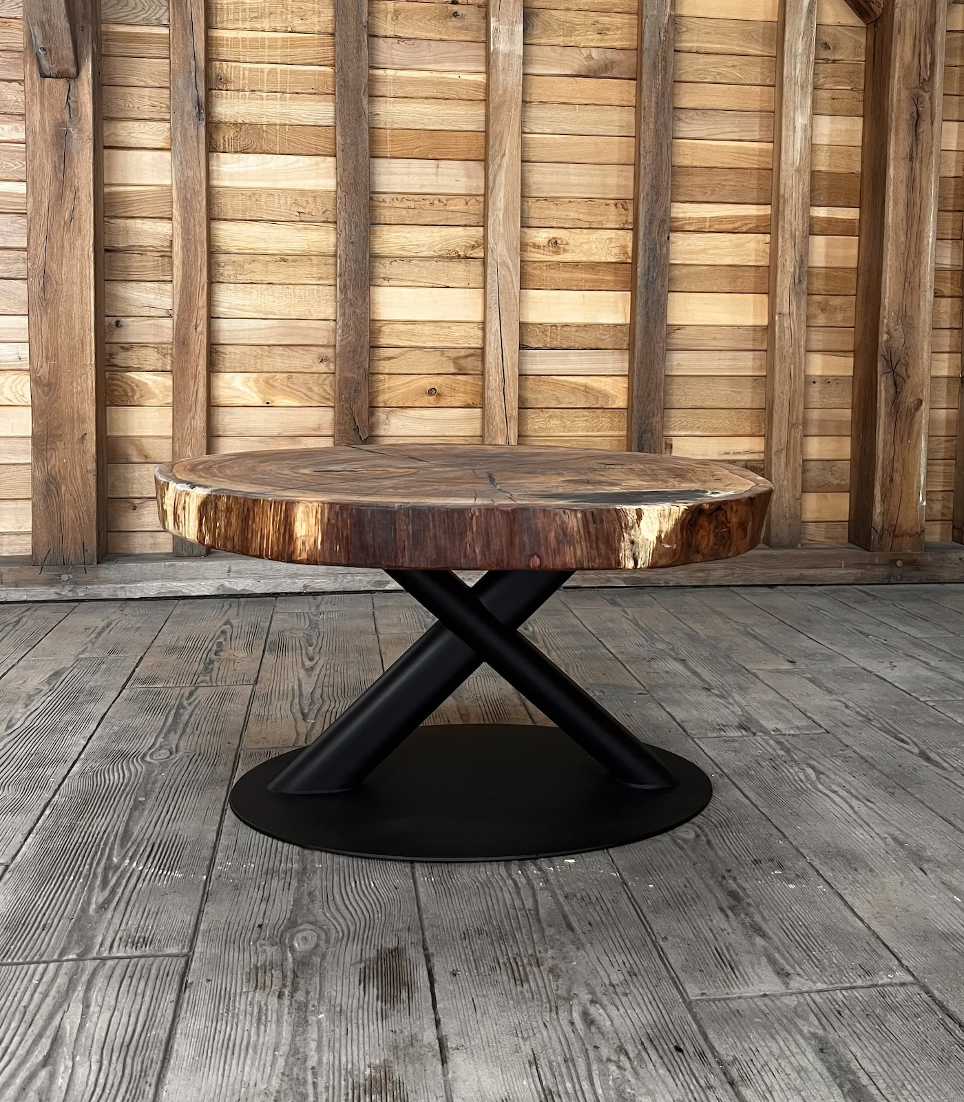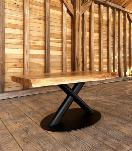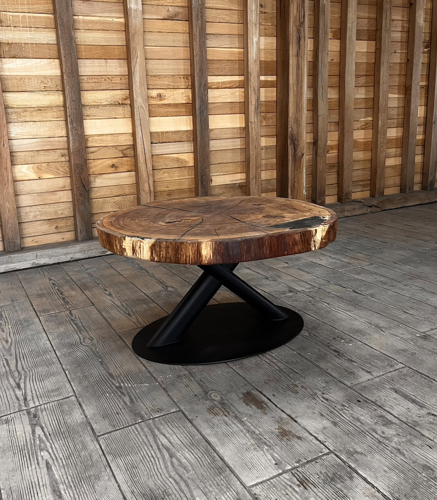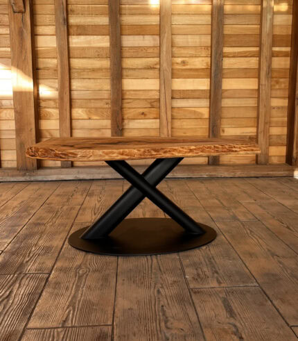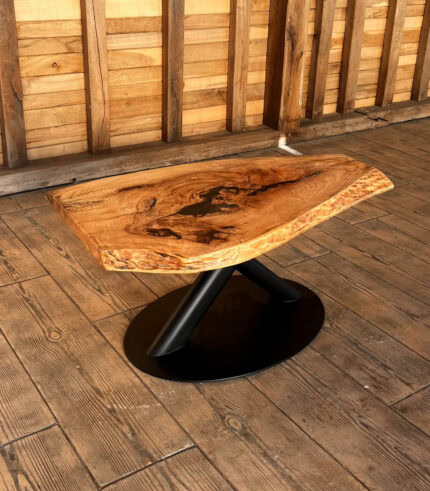 Dacă cauți o piesă care să emane putere, acest model este alegerea supremă. Grosimea de 7 cm a blatului de stejar transformă măsuța într-o prezență sculpturală. Nu este doar o piesă de mobilier, ci o „felie” autentică de pădure, lucrată manual pentru a păstra spiritul liber al copacului în casa ta.