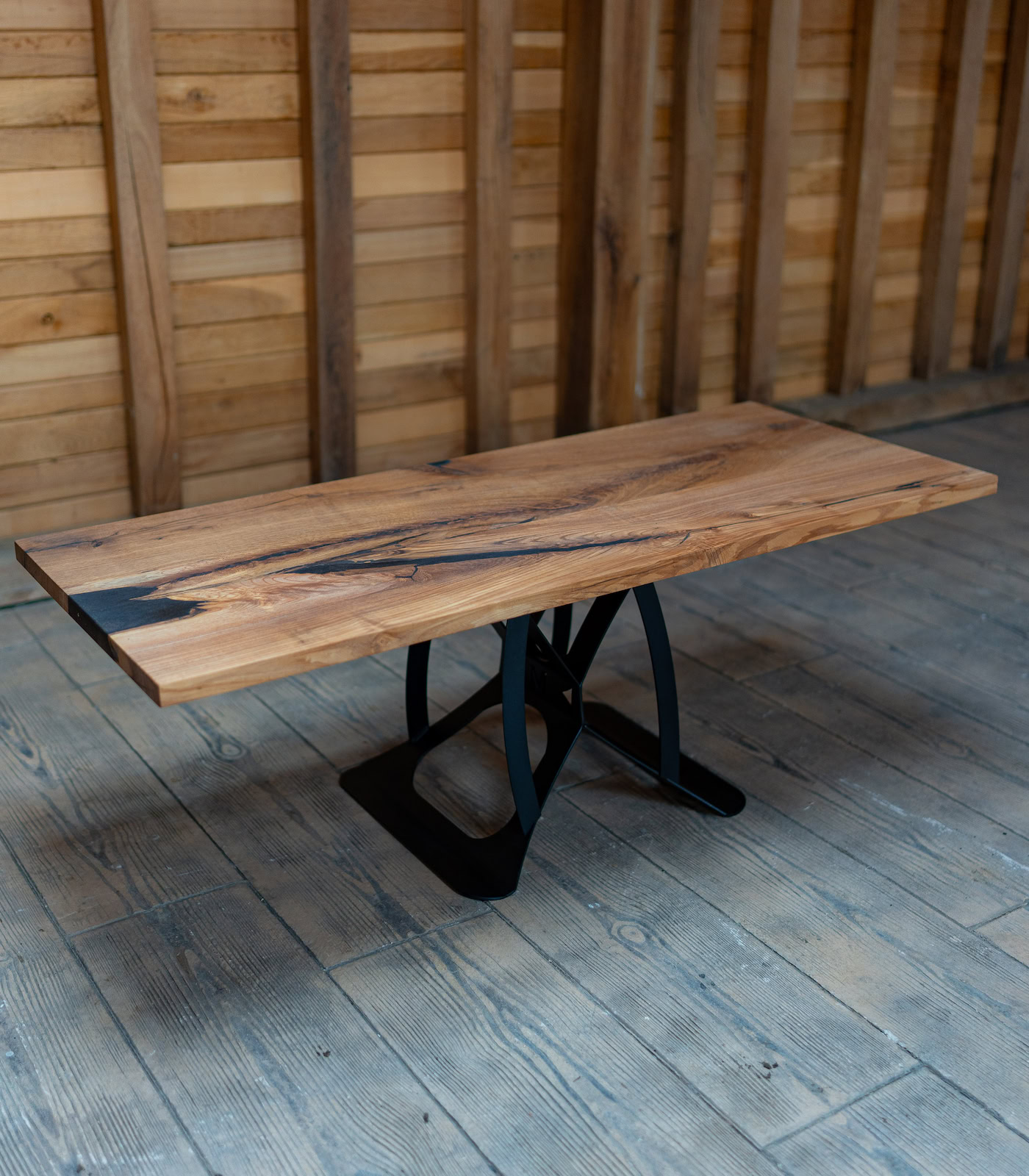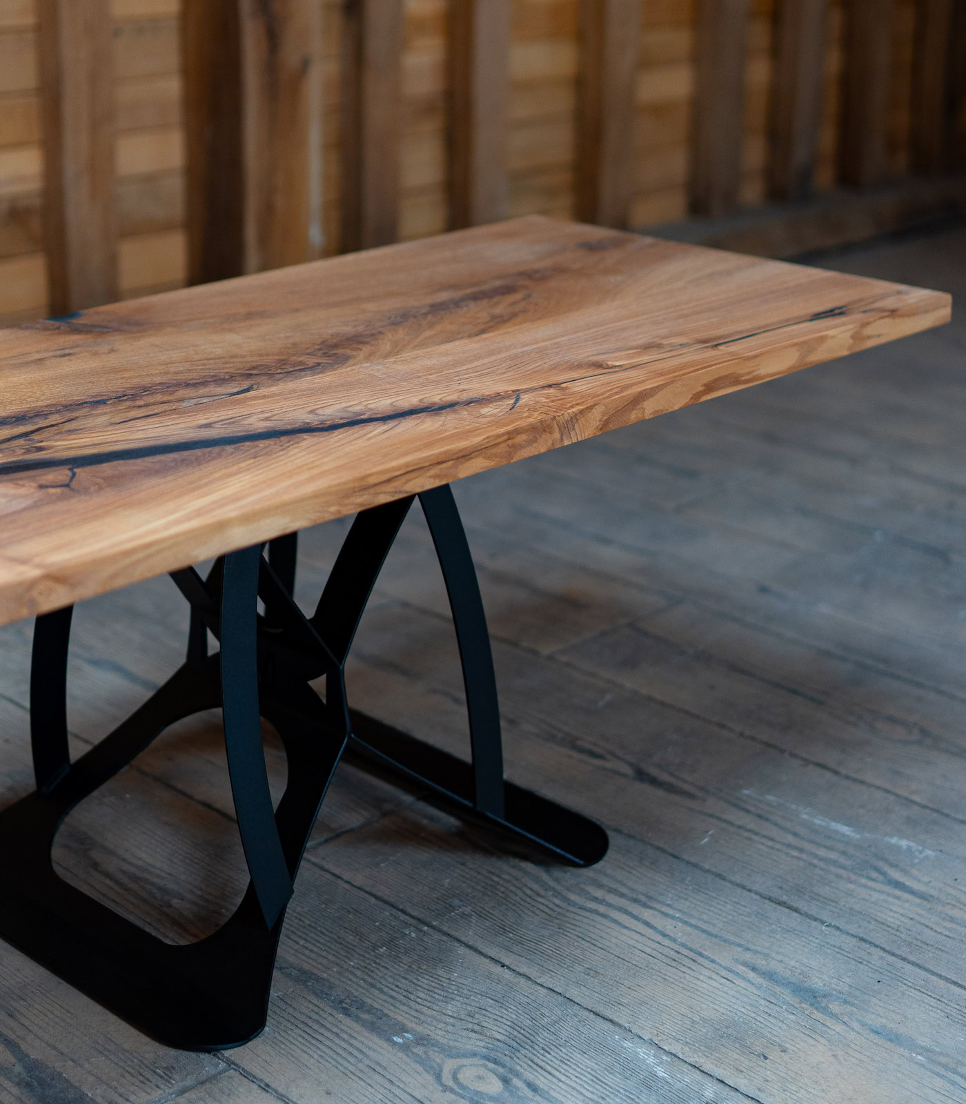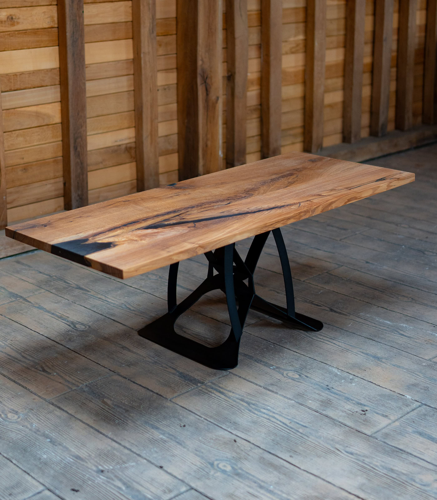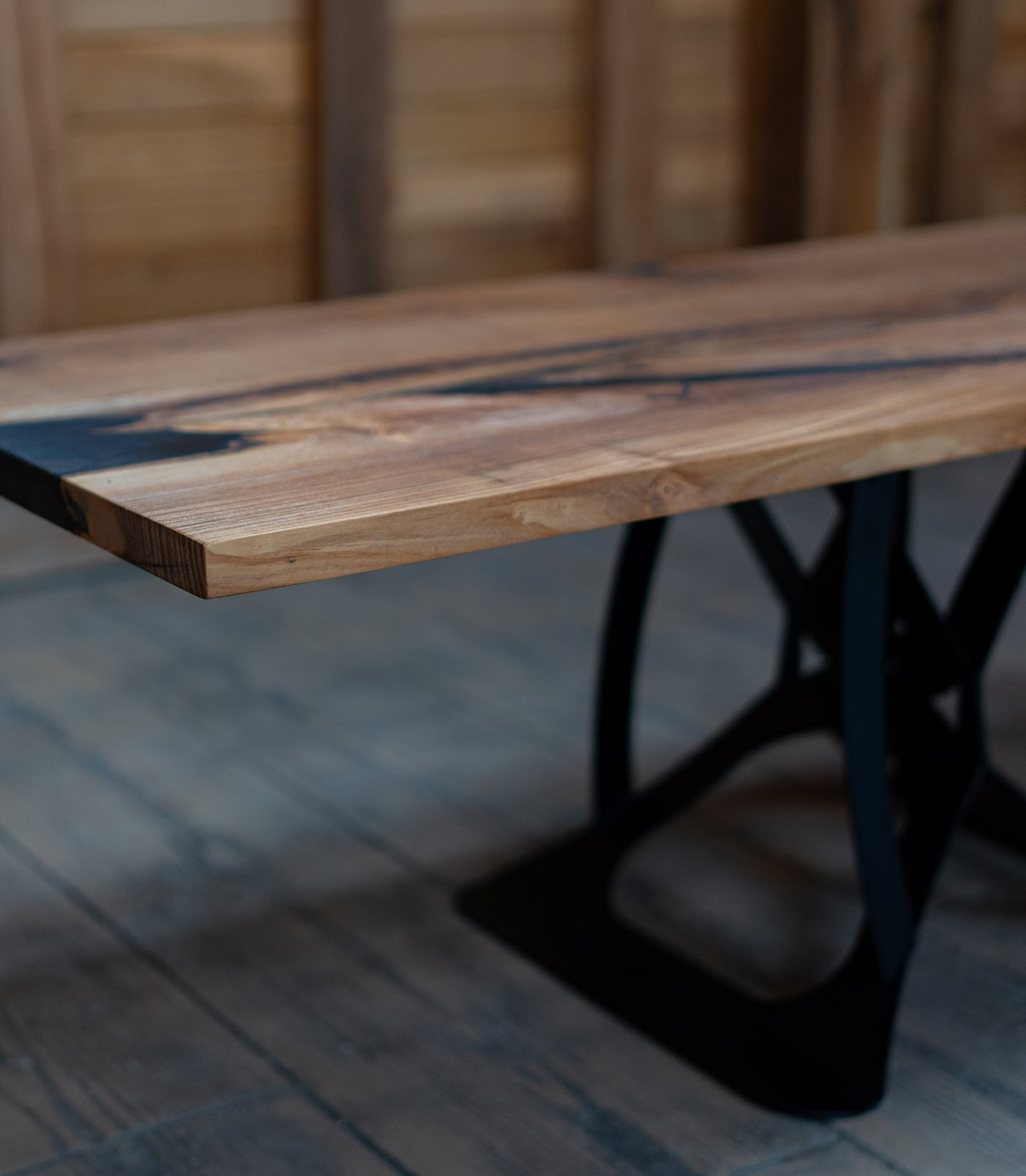 Contrast High-definition: Rășina neagră „pop-ează” incredibil pe fundalul mieriu al stejarului, oferind un aspect curat și rafinat.