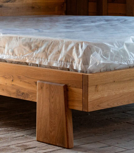 Pat matrimonial robust din stejar masiv (220×190 cm), proiectat pentru durabilitate și confort. Designul minimalist și tăblia înaltă, cu margine naturală (live edge), aduc un plus de căldură și autenticitate oricărui dormitor. O investiție într-un somn odihnitor și într-o estetică naturală, de lungă durată.