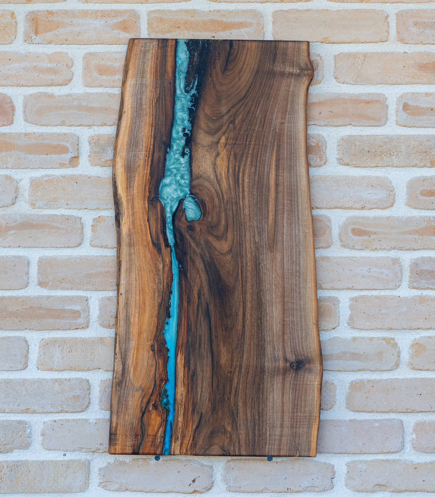 Versatilitate decorativă: Când nu este folosit pentru servire, platoul poate fi expus ca un tablou orizontal sau vertical, datorită esteticii sale de tip „river table”.