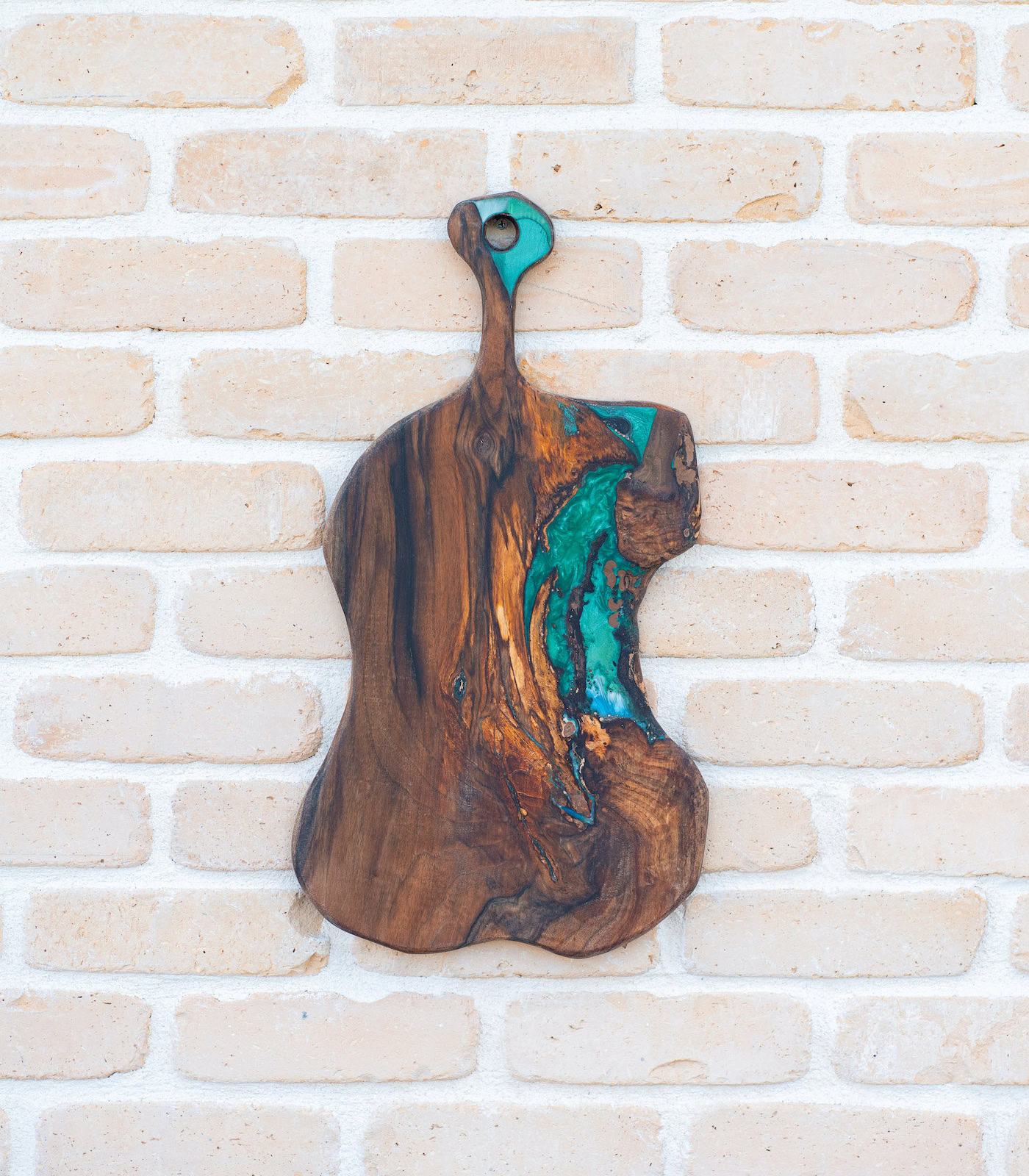 Pătrunde în universul colecției Deep Forest cu acest tocător unicat, realizat manual din lemn nobil de nuc și rășină epoxidică verde. Contrastul dintre fibra închisă, elegantă a nucului și inserția smarald transformă acest obiect utilitar într-o piesă statement pentru orice bucătărie modernă. Este alegerea perfectă pentru cei care caută un echilibru între luxul organic și funcționalitatea de zi cu zi.