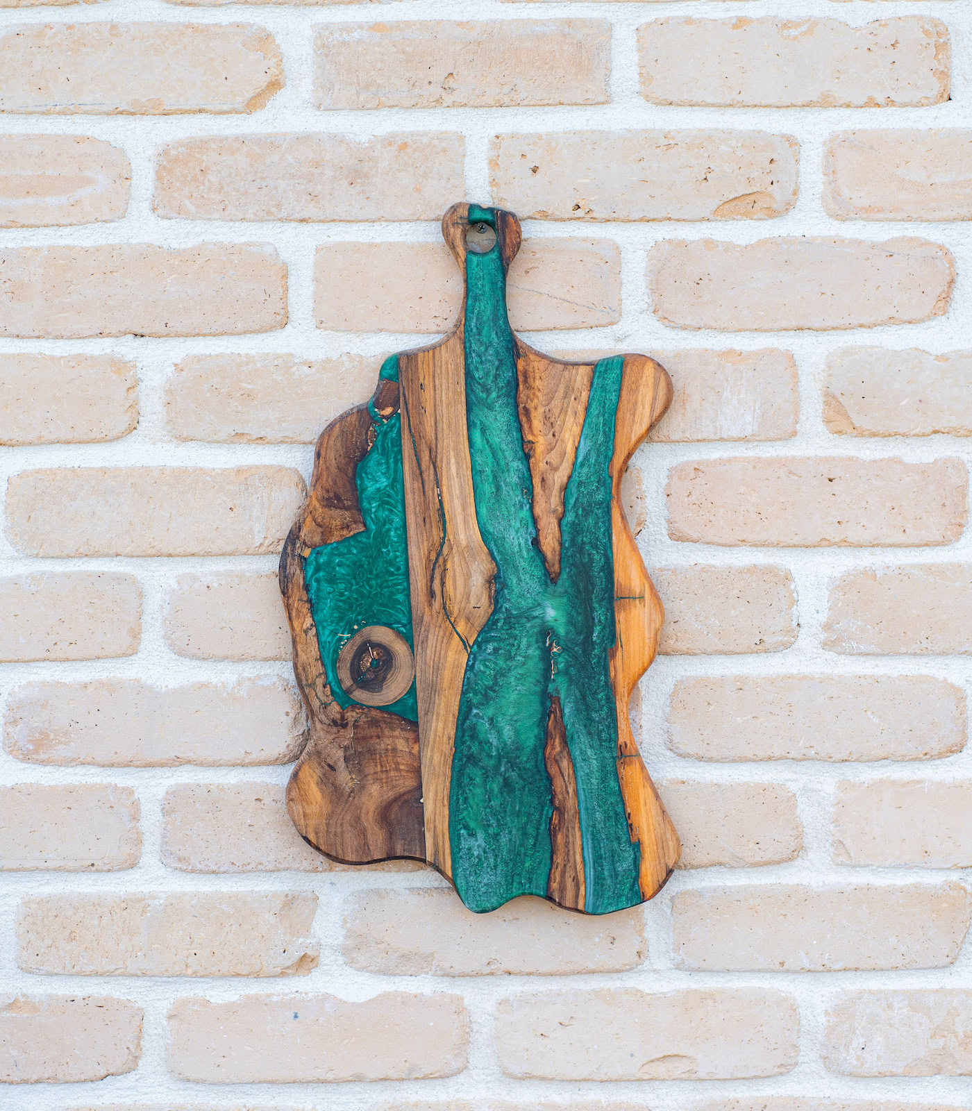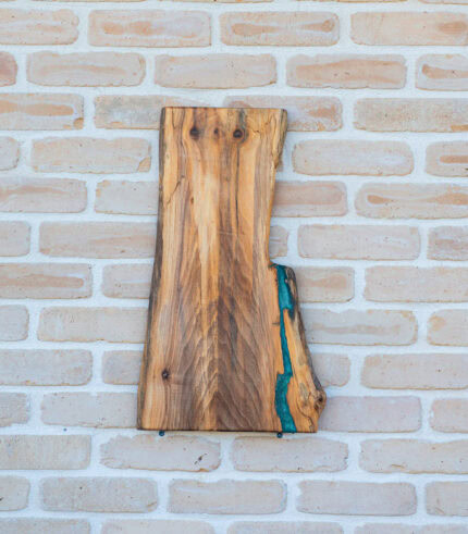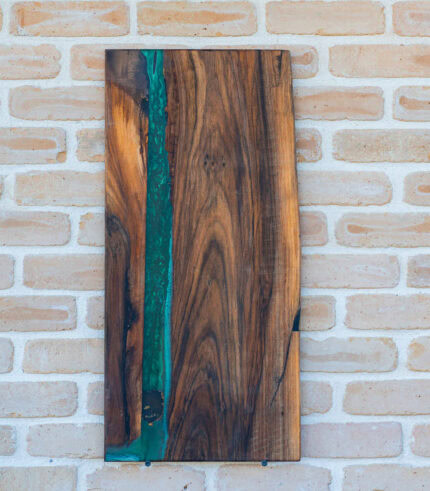 Această piesă din colecția Deep Forest este mai mult decât un simplu accesoriu de bucătărie; este o mică operă de artă creată să reziste generațiilor. Nucul masiv, ales pentru densitatea și durabilitatea sa, este pus în valoare de o inserție fluidă de rășină smarald care evocă imaginea unui râu ce traversează o pădure virgină.