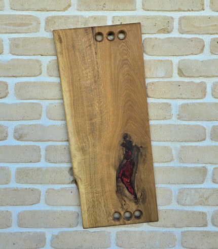 Această piesă combină estetica unui River Table într-un format funcțional de tocător. Stejarul robust, cu fibra sa proeminentă, este pus în valoare de un design inovator.